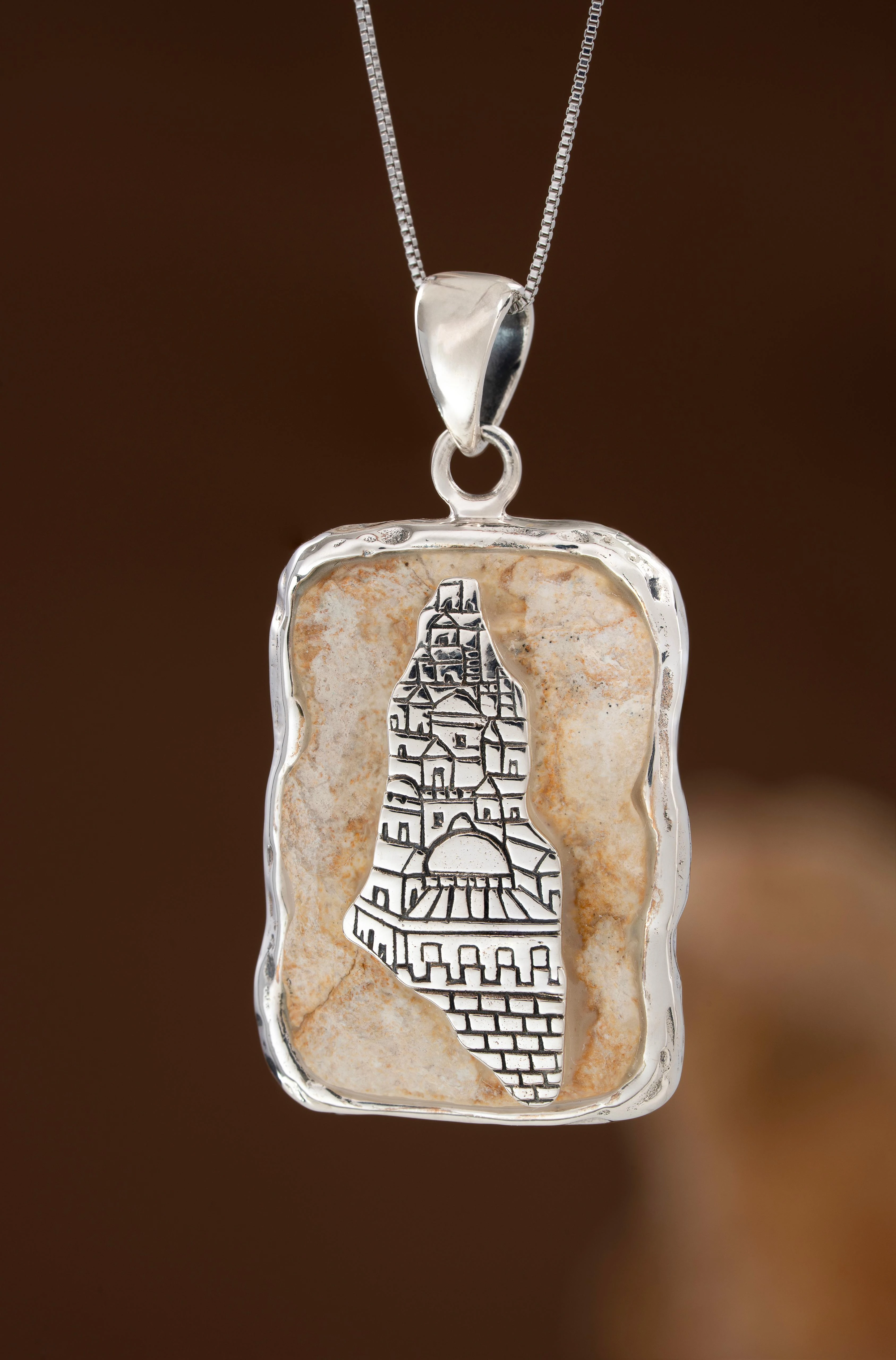 A unique necklace combining natural beauty with deep symbolism, crafted from high-quality 925 sterling silver and handmade in Jerusalem. The pendant features a raised engraved map of Palestine on natural gemstones, creating a distinctive piece that reflects heritage and love for the land. Wear it to add a touch of elegance and meaning, or gift it as a special token of identity and connection to Palestine. Key Features:
