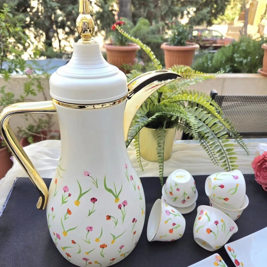 Add a touch of authentic elegance to your gatherings with this Arabic coffee dallah set with cups. A beautiful blend of tradition and style, perfect for serving coffee with sophistication ✨ Features: