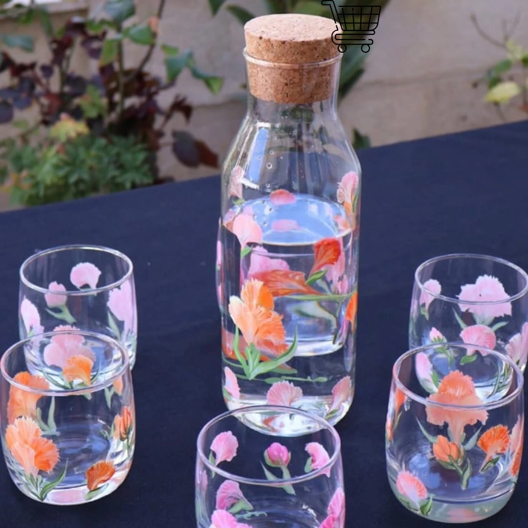 Add a touch of elegance to your table with this unique carafe set featuring 6 glasses, beautifully decorated with 100% hand-painted carnation flowers in three stunning colors ๐ต๐ธ๐บ โจ Features: