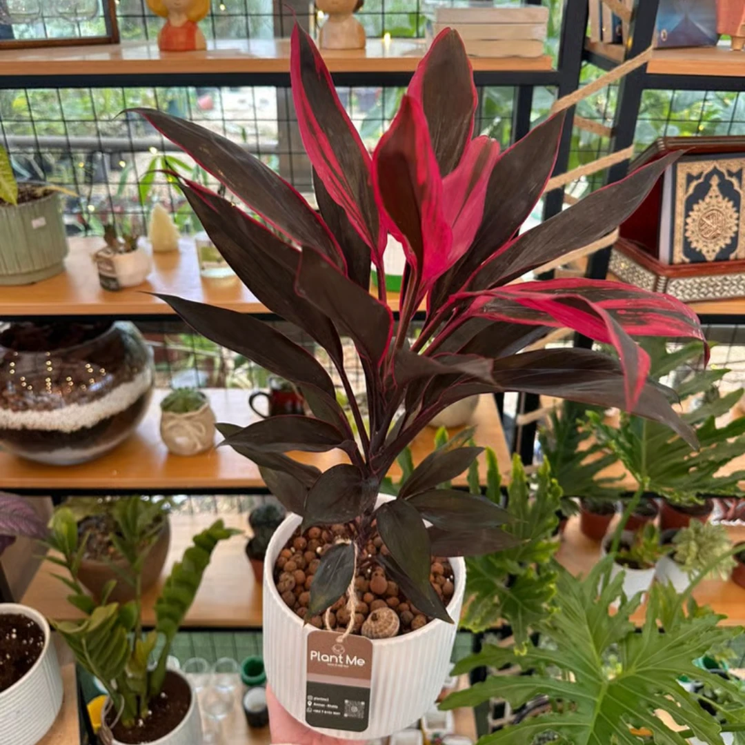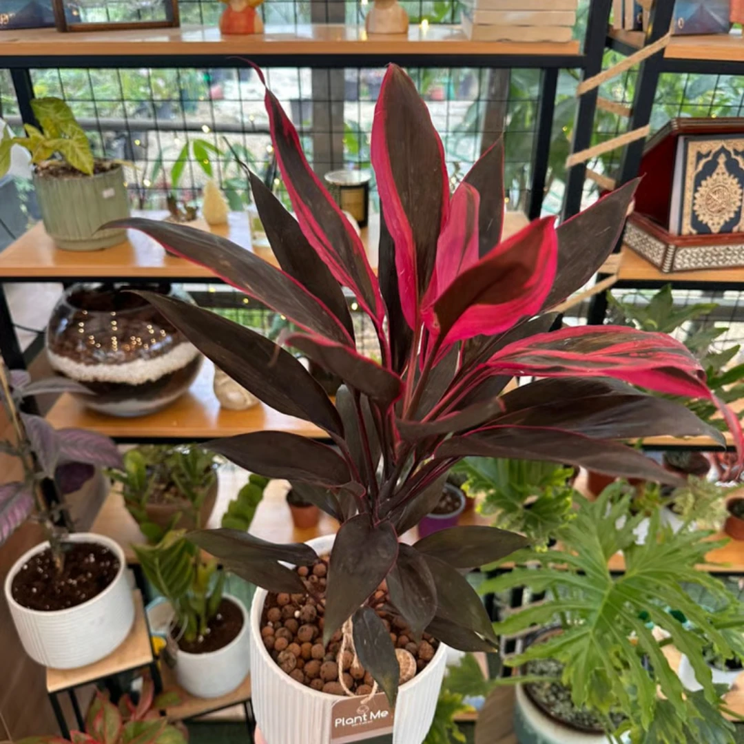 Add a bold, tropical statement to your space with the Cordyline Fruticosa Plant, known for its striking, colorful foliage that brings life and energy to any interior. Planted in a sleek white ceramic pot, it offers a perfect balance of natural beauty and modern style, ideal for homes and offices. Key Features: