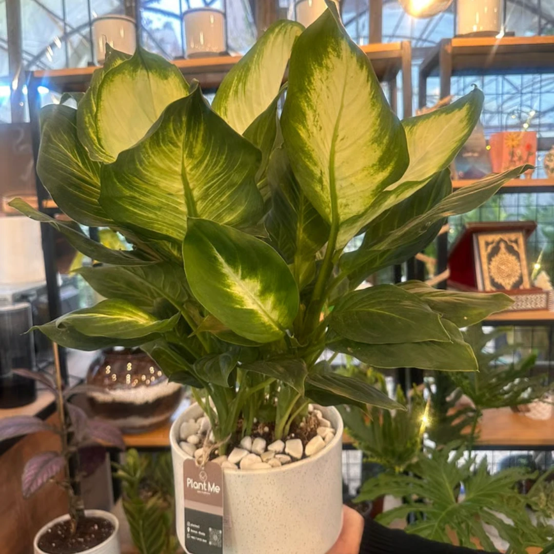 Enhance your interior with the striking beauty of the Dieffenbachia Plant, known for its large, patterned leaves and vibrant green presence. This decorative houseplant brings a fresh, natural feel to any home or office while remaining easy to care for. Key Features: