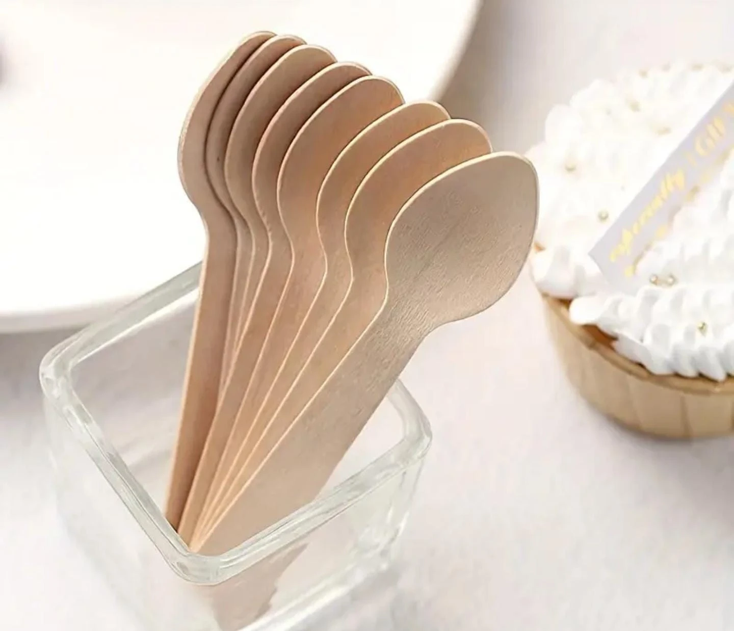Eco-Friendly Wooden Spoons - 9.5cm Length - Pack of 100 Disposable Spoons Elevate your dessert and beverage service with our natural 9.5cm wooden spoons, the eco-friendly choice perfect for cafés, restaurants, and events. Crafted from high-quality, sustainable wood, they offer a safe and planet-friendly alternative to plastic. ✅ Eco-Friendly: 100% biodegradable and compostable, helping reduce waste and protect the environment.