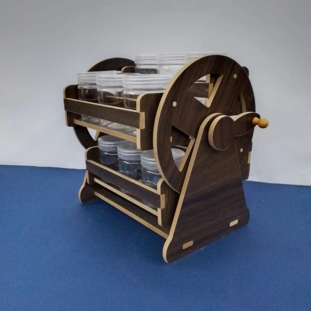 A practical and stylish spice stand designed to keep your kitchen neatly organized with a modern touch. It comes with 12 clear plastic jars that allow easy visibility of the contents, so you can quickly identify each spice and monitor remaining quantities without opening the lid. Made from durable, food-safe materials, the smart design saves space and ensures quick access while cooking.