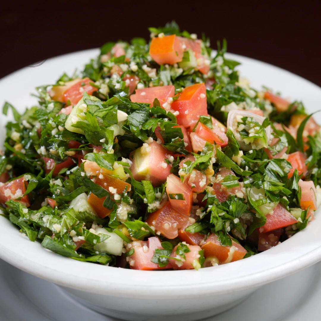 Enjoy a medium-sized tabbouleh bowl, filled with fresh and diverse flavors. Made with tender bulgur, finely chopped parsley, diced tomatoes, and balanced spices, it’s the perfect dish for those looking for a healthy and delicious option for Ramadan. A touch of lemon juice and olive oil adds a distinctive flavor to every bite. The tabbouleh bowl is the ideal addition to your Ramadan table as a refreshing and tasty side dish. Ramadan Kareem |