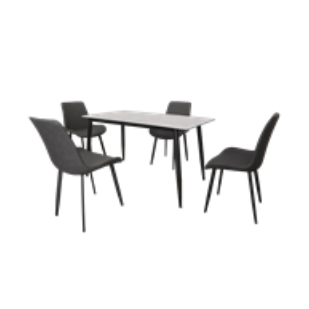 An elegant and modern dining set featuring a gray artificial marble table measuring 130x70 cm, paired with 4 comfortable chairs upholstered in soft gray leather. This set combines contemporary design with durable materials, perfectly suited to complement various home décors while providing a stylish and comfortable dining experience. |