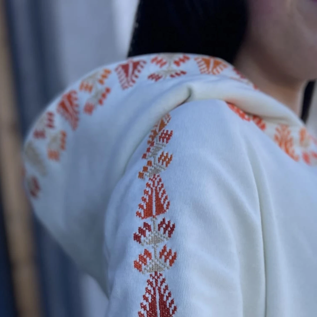 Experience practical elegance with this hand-embroidered hoodie, designed to drape gracefully for a tailored, flattering fit. Detailed hand embroidery adds a unique artistic touch to selected areas of the garment. Features: