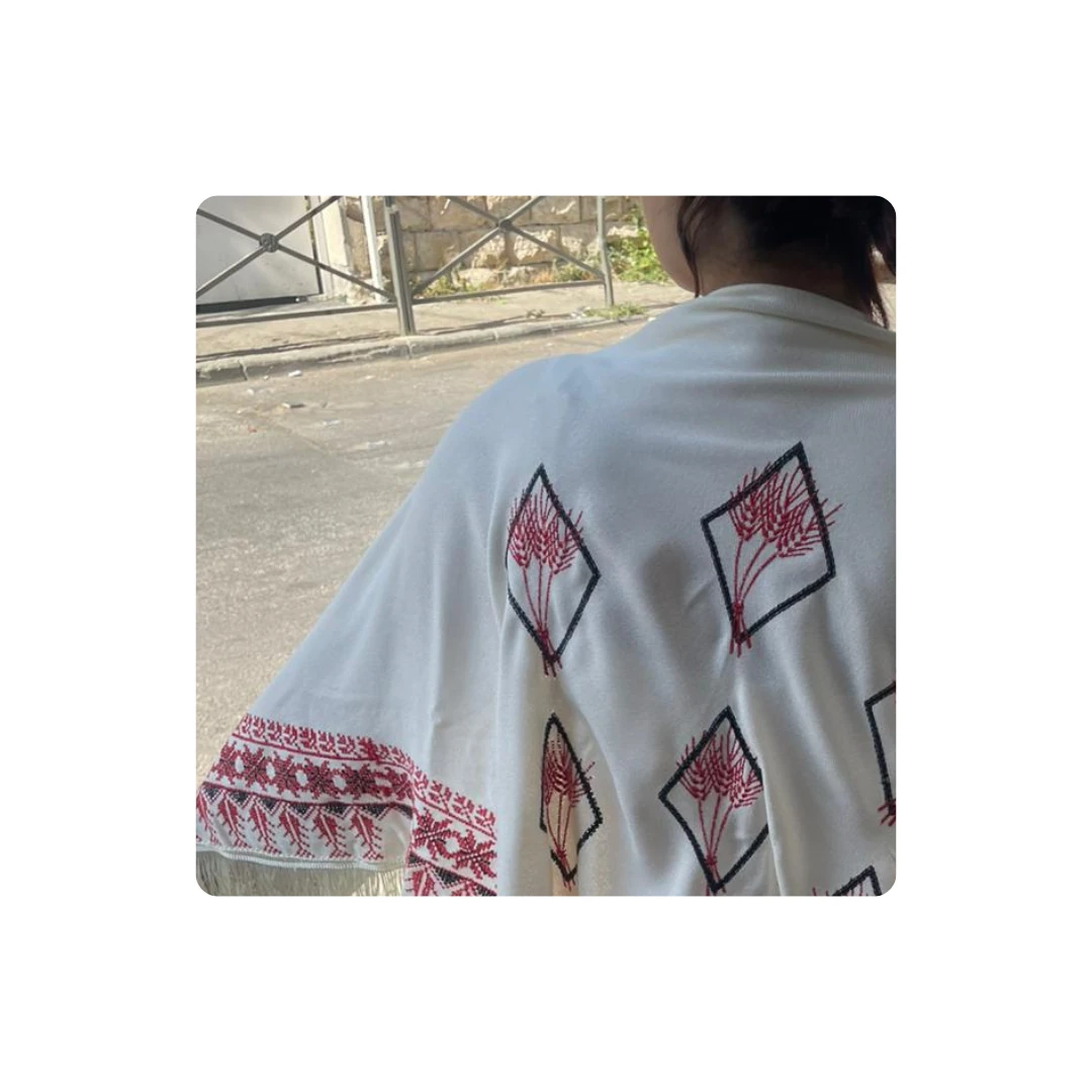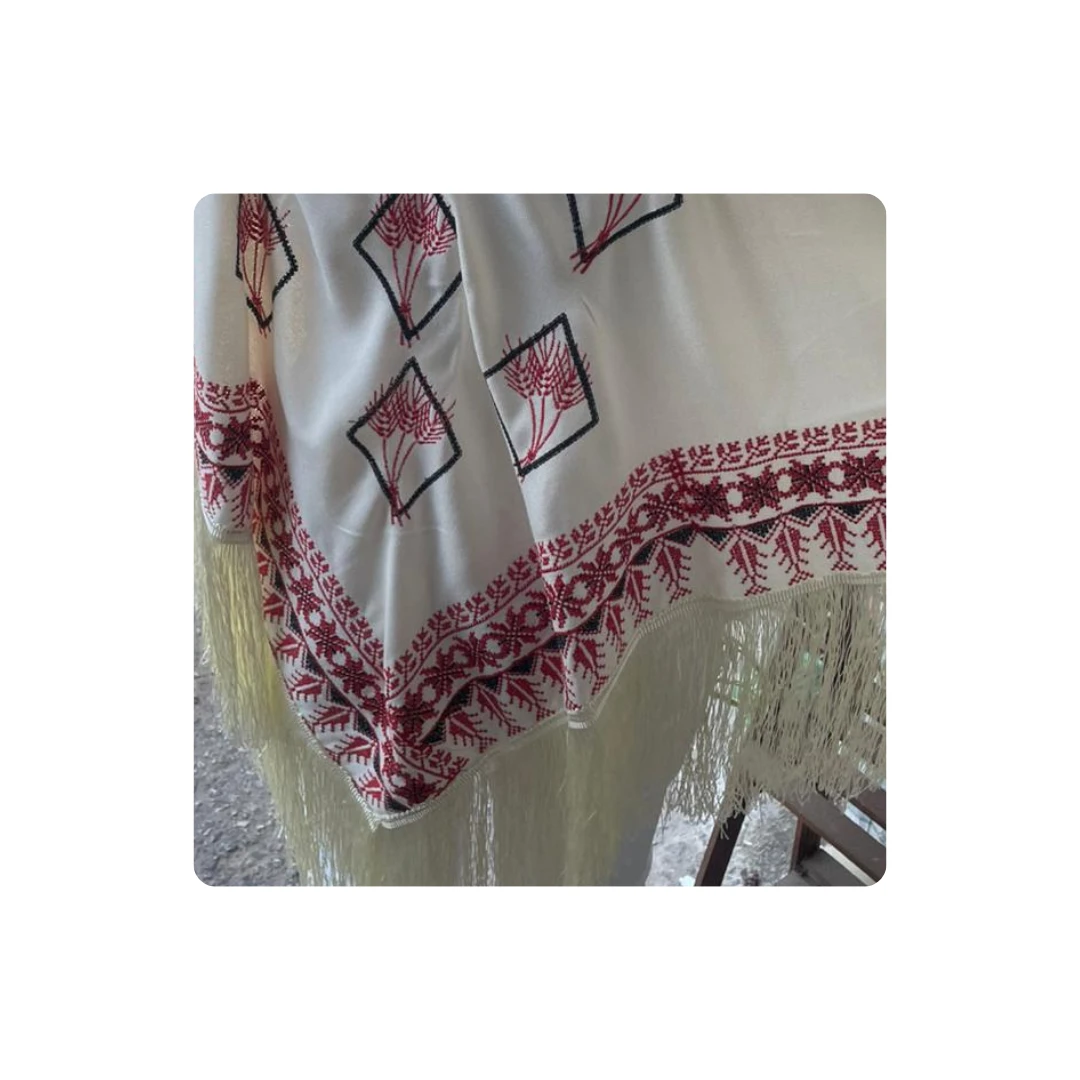 Add a traditional and elegant touch to your look with this hand-embroidered shawl, carefully crafted to reflect authentic Palestinian heritage. ✅ Meticulous hand embroidery