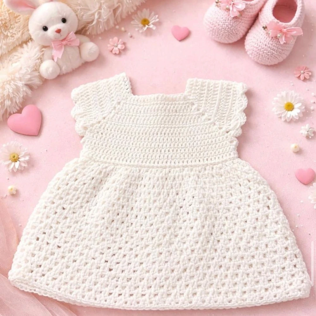 A beautiful and elegant handmade crochet dress, crafted with love to give your little girl a soft, charming, and comfortable look. 🧶 Carefully handmade with high-quality yarn A perfect choice for a stylish and cozy look for your little girl 💕 |