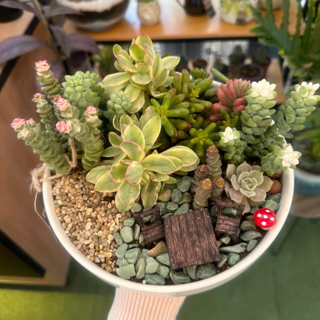 Bring a refined, artistic touch to your space with this handcrafted miniature succulent garden bowl. Carefully arranged with a variety of decorative succulents, this piece blends natural beauty with modern design, making it an eye-catching addition to any table, shelf, or workspace. Key Features: