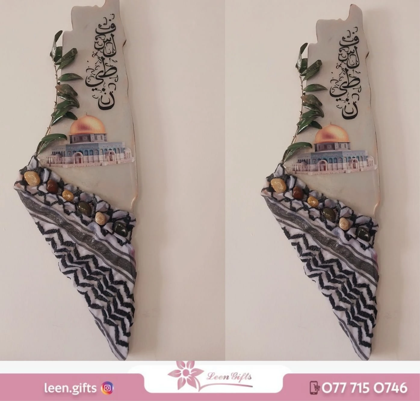 Palestine Map Frame – 70 cm Made of Wood, Kufiya, Resin, and Olive Branch Add a touch of heritage and identity to your space with this exquisite frame featuring the map of Palestine. Handcrafted from a unique blend of premium wood, traditional Palestinian kufiya fabric, innovative resin, and a natural olive branch symbolizing peace and authenticity. 🖼️ Specifications: