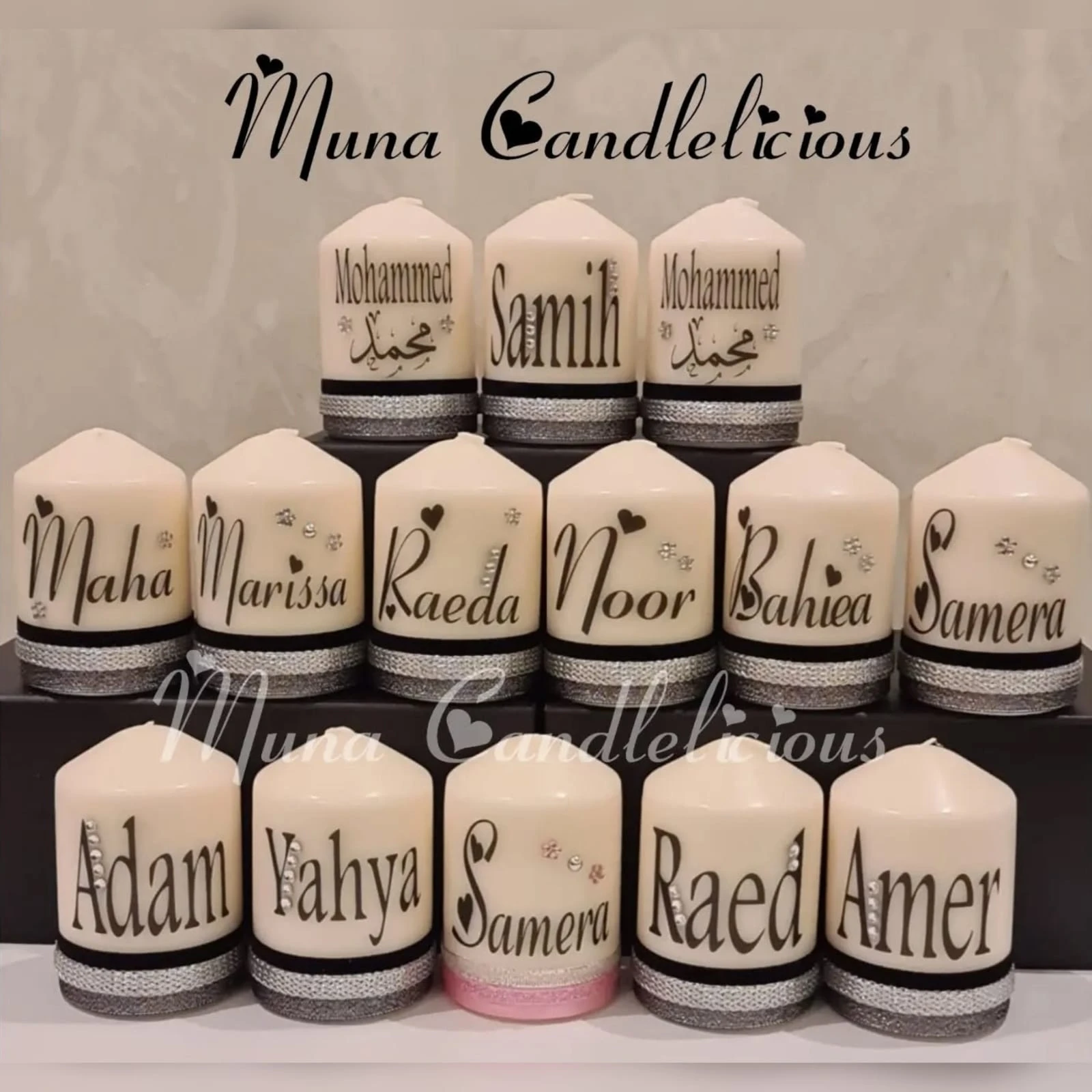 Personalized Name Candles – Medium Size – 10 cm Height × 6.5 cm Diameter – Minimum Order: 3 Candles Create unforgettable moments with personalized name candles — perfect for gifting or adding a unique touch to your décor. Whether it's for a birthday, engagement, or simply to celebrate a name, these candles make it special. Specifications:
