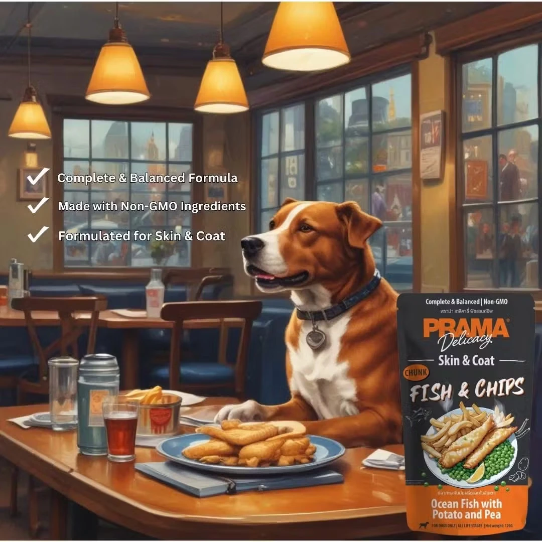 Prama Dog Wet Food 120g Skin and Coat Fish & Chips