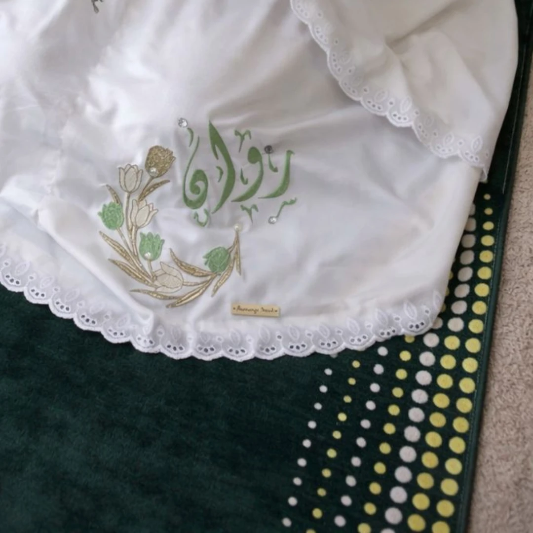 Enjoy a spiritual and elegant experience with the premium prayer bundle from Flamingo Embroidery, carefully designed to combine beauty and precision. The set includes a prayer rug embroidered using advanced digital embroidery techniques, giving it a refined artistic touch and long-lasting quality. Perfect for personal use or as a thoughtful and elegant gift. ✨ Elegant design