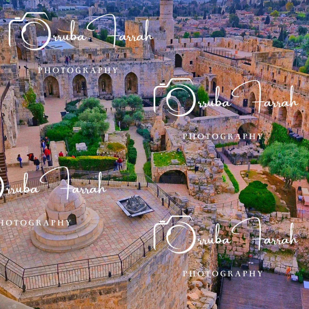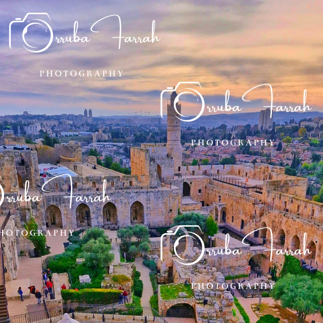 Captured through the lens of Jerusalemite photographer Oruba Faraah, this stunning high-resolution image showcases the Citadel of Jerusalem, one of the most iconic landmarks of the Old City, located beside Jaffa Gate. The ancient walls and towers of the citadel tell the story of centuries of history, blending strength, heritage, and timeless beauty.
