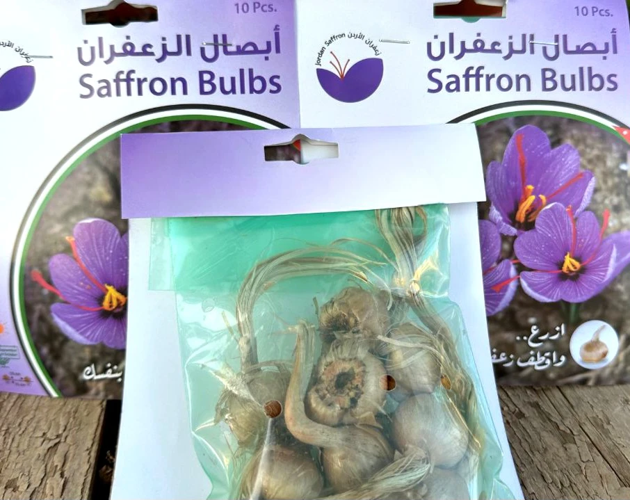 The Saffron Bulb Plant The saffron plant (Crocus sativus) grows from a small bulb called a corm. It blooms in autumn, producing delicate purple flowers with vivid red stigmas. These stigmas are harvested by hand and dried to become saffron—the world’s most expensive spice. Saffron bulbs prefer well-drained soil and sunny locations. With proper care, they multiply each year and bring both beauty and value to gardens. 10 bulbs for 6 JDs