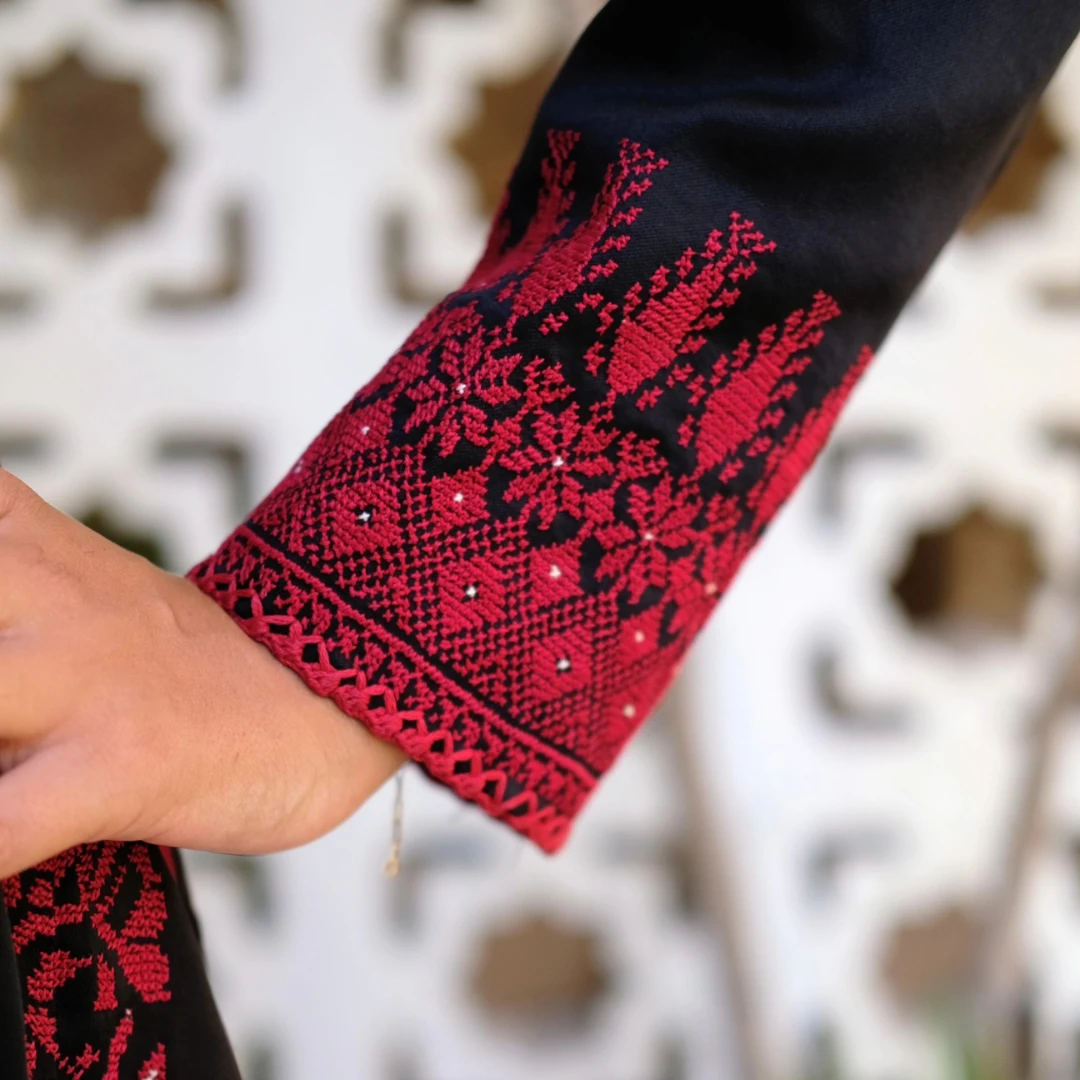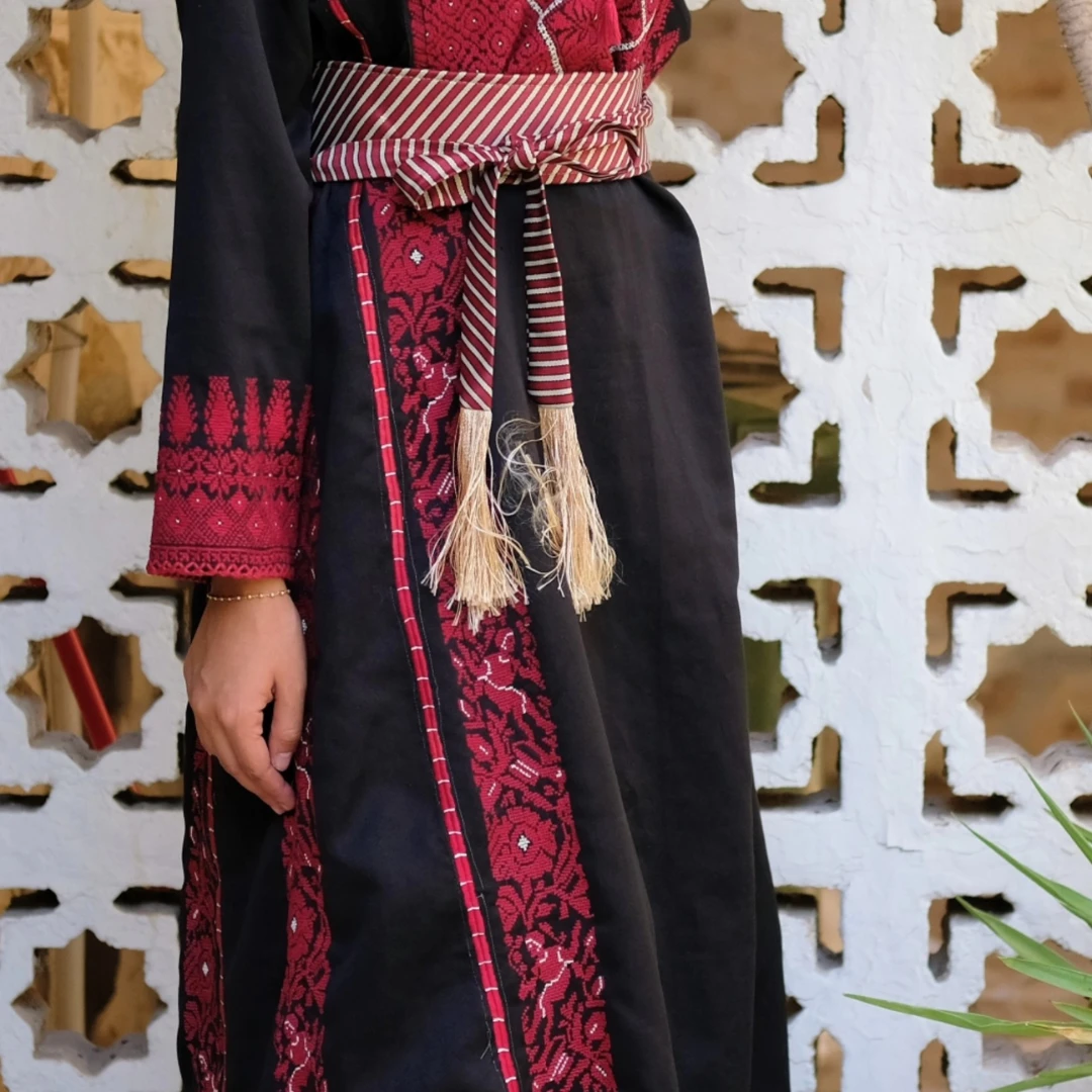 For sale: an original traditional Palestinian thobe featuring luxurious hand embroidery and exquisite detailing, reflecting the beauty of heritage and the art of craftsmanship. ✨ Measurements: