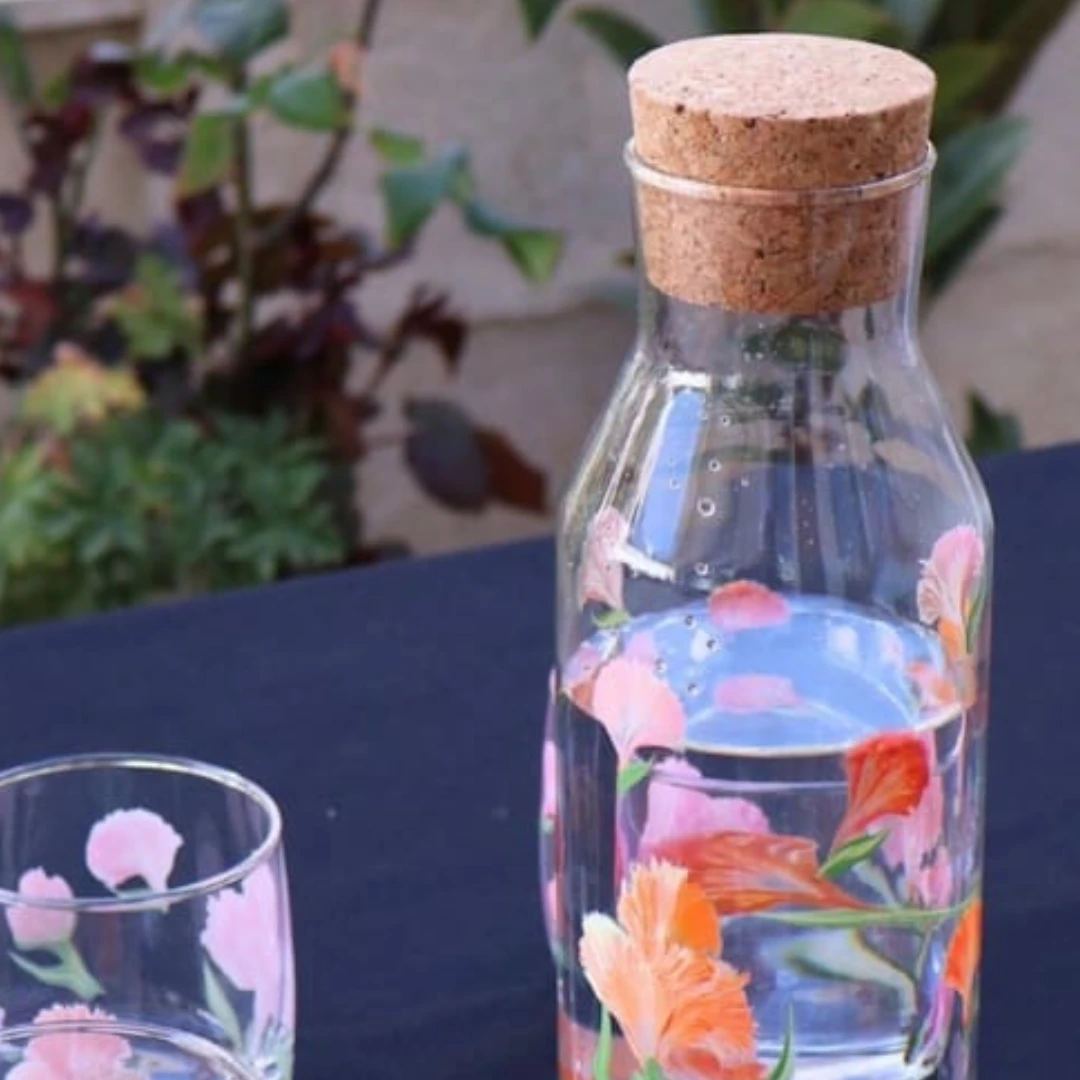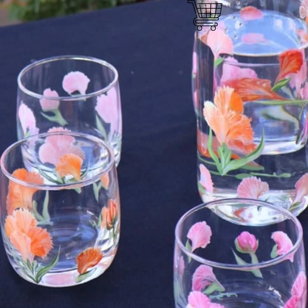 Add a touch of elegance to your table with this unique carafe set featuring 6 glasses, beautifully decorated with 100% hand-painted carnation flowers in three stunning colors ๐ต๐ธ๐บ โจ Features: