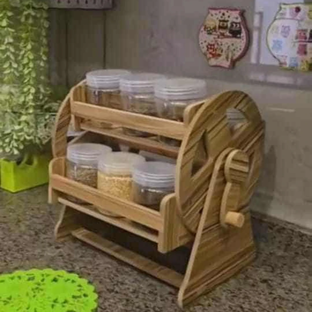 A practical and stylish spice stand designed to keep your kitchen neatly organized with a modern touch. It comes with 12 clear plastic jars that allow easy visibility of the contents, so you can quickly identify each spice and monitor remaining quantities without opening the lid. Made from durable, food-safe materials, the smart design saves space and ensures quick access while cooking.
