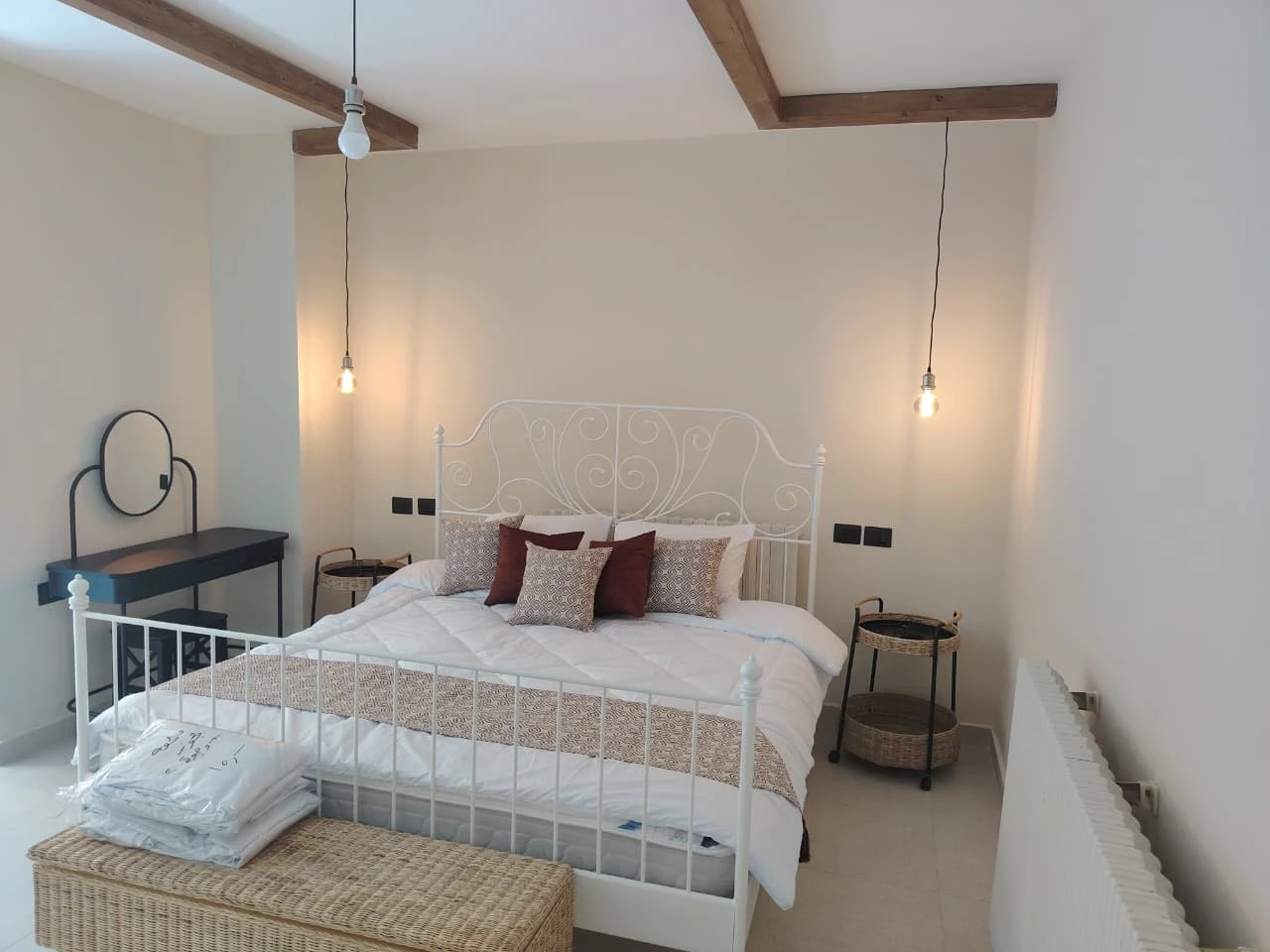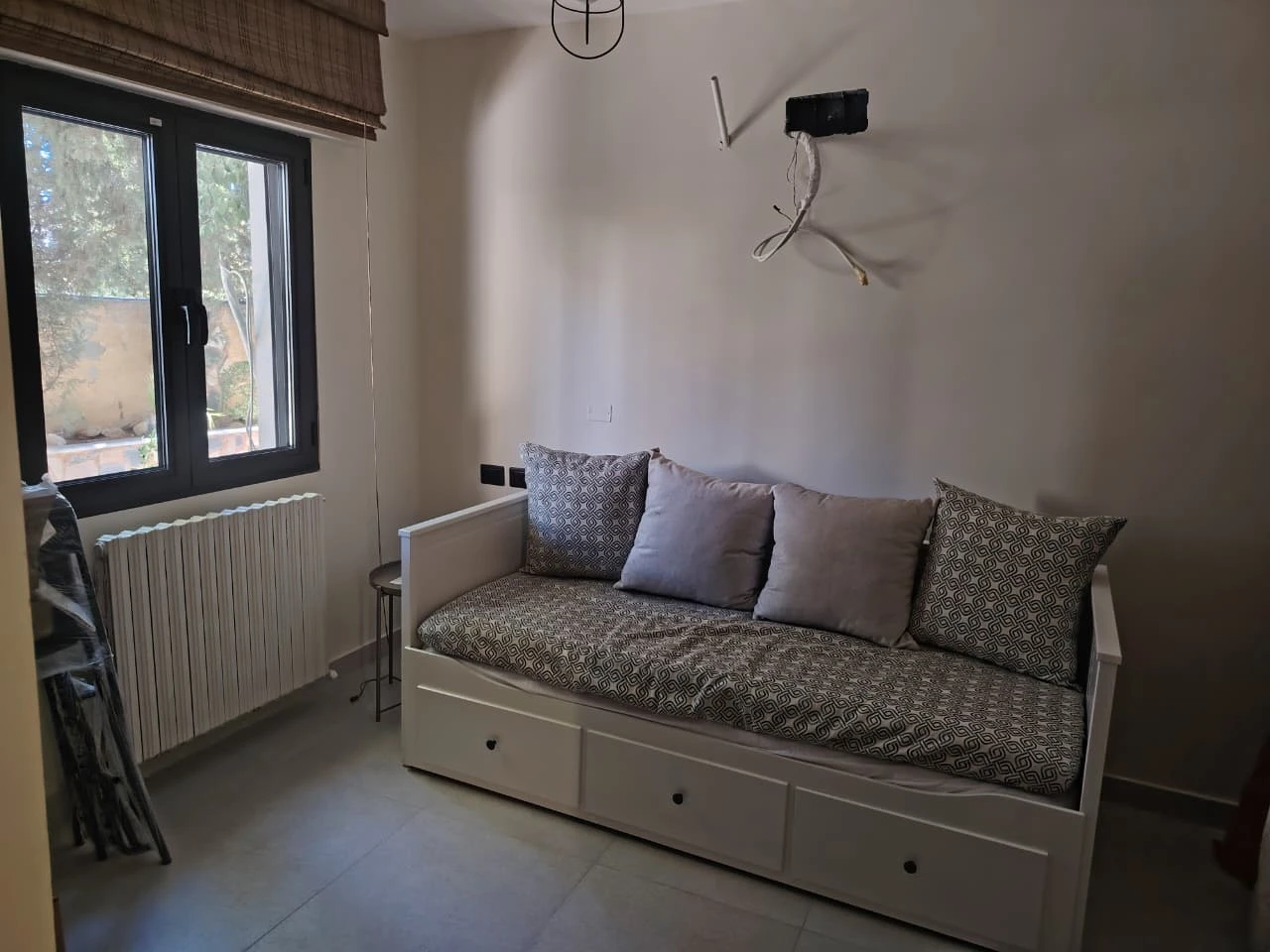 A spacious and newly built 2023 furnished ground floor apartment in the desirable Shmeisani area. It features a 175 SQM interior and a large 200 SQM uncovered area/garden. The apartment includes 2 badrooms and 1 bathrooms . It comes equipped with central heating (Radiator Heating System), AC units, electric shutters, two kitchens (Appliance and Dirty Kitchen ) ceramic and marble flooring, a balcony, and terraces. Additional amenities include a maid room, guard room, parking, and storage, making it perfact for a comfortable and luxury lifestyle. |
