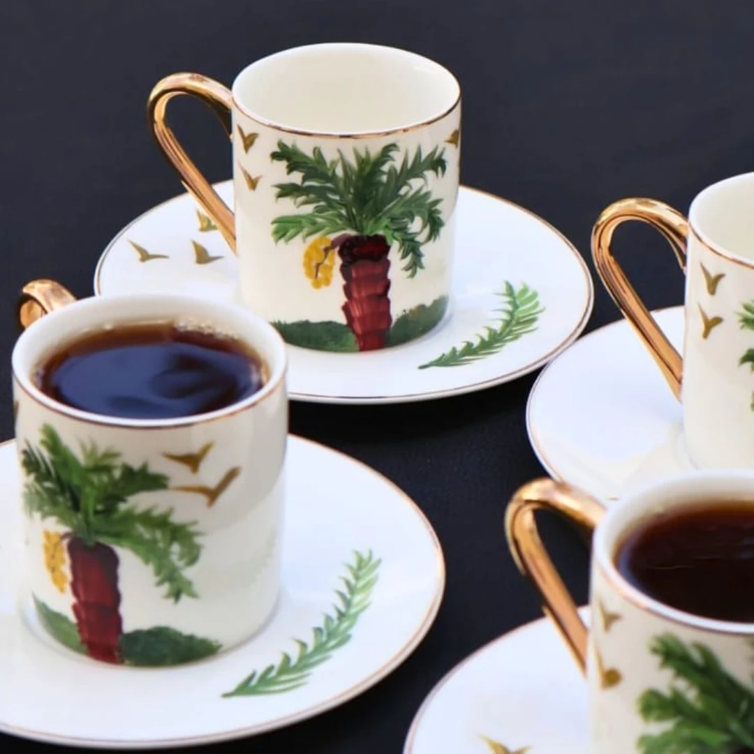 Enjoy an authentic Turkish coffee experience with this beautiful set of cups, featuring a stunning palm tree design ๐ด โจ Features:
