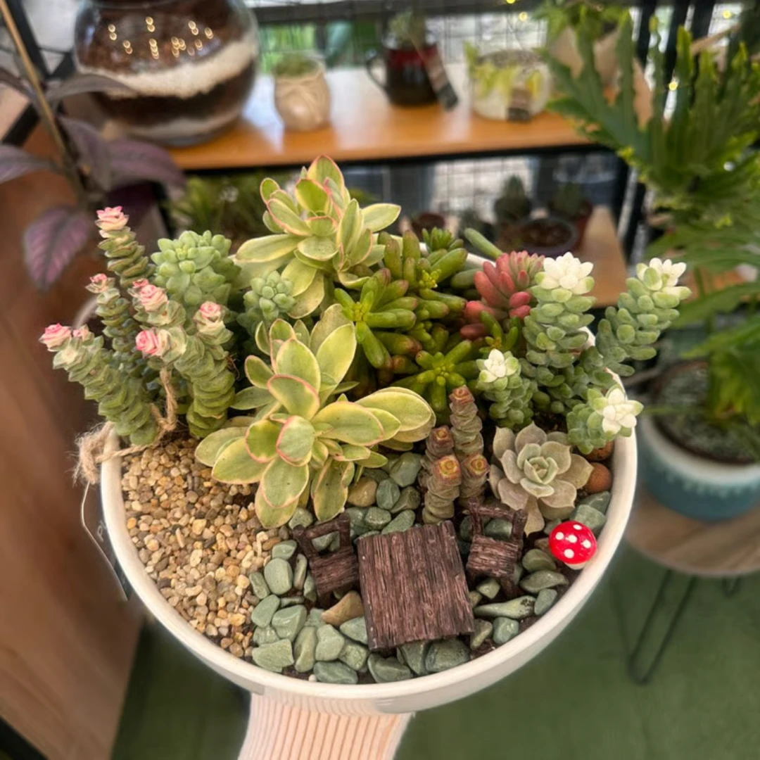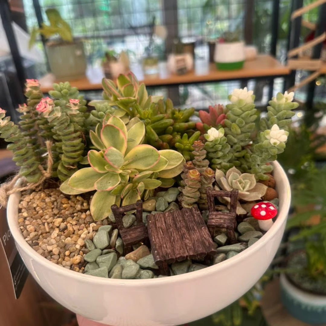 Bring a refined, artistic touch to your space with this handcrafted miniature succulent garden bowl. Carefully arranged with a variety of decorative succulents, this piece blends natural beauty with modern design, making it an eye-catching addition to any table, shelf, or workspace. Key Features: