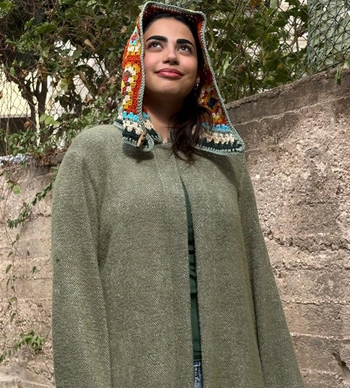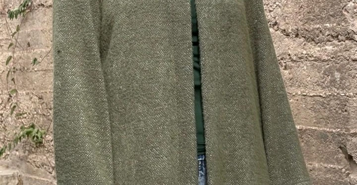 Description: Make a bold, artistic statement with this long mossy-green overcoat featuring a vibrant crochet square hood. The multi-colored geometric pattern of the handcrafted squares adds a playful yet sophisticated touch, showing how artisanal details can transform a classic silhouette into a unique, eye-catching piece. Perfect for layering in style while keeping cozy and chic. Specifications:Design: Long overcoat with multi-colored crochet square hood Why You’ll Love It:✔ Bold, handcrafted crochet hood adds personality and charm |