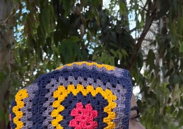 Description: Add a retro-inspired pop of color to your winter wardrobe with this handcrafted crochet hooded scarf. Featuring a striking graphic square pattern in deep navy, vibrant mustard yellow, and gray, accented by a bright hot pink center, it combines warmth, style, and playful artistry. Perfect for layering, this scarf transforms any outfit into a cozy, eye-catching statement. Specifications:Design: Hooded scarf with bold, graphic crochet squares Why You’ll Love It:✔ Handcrafted crochet with vibrant, retro-inspired colors |