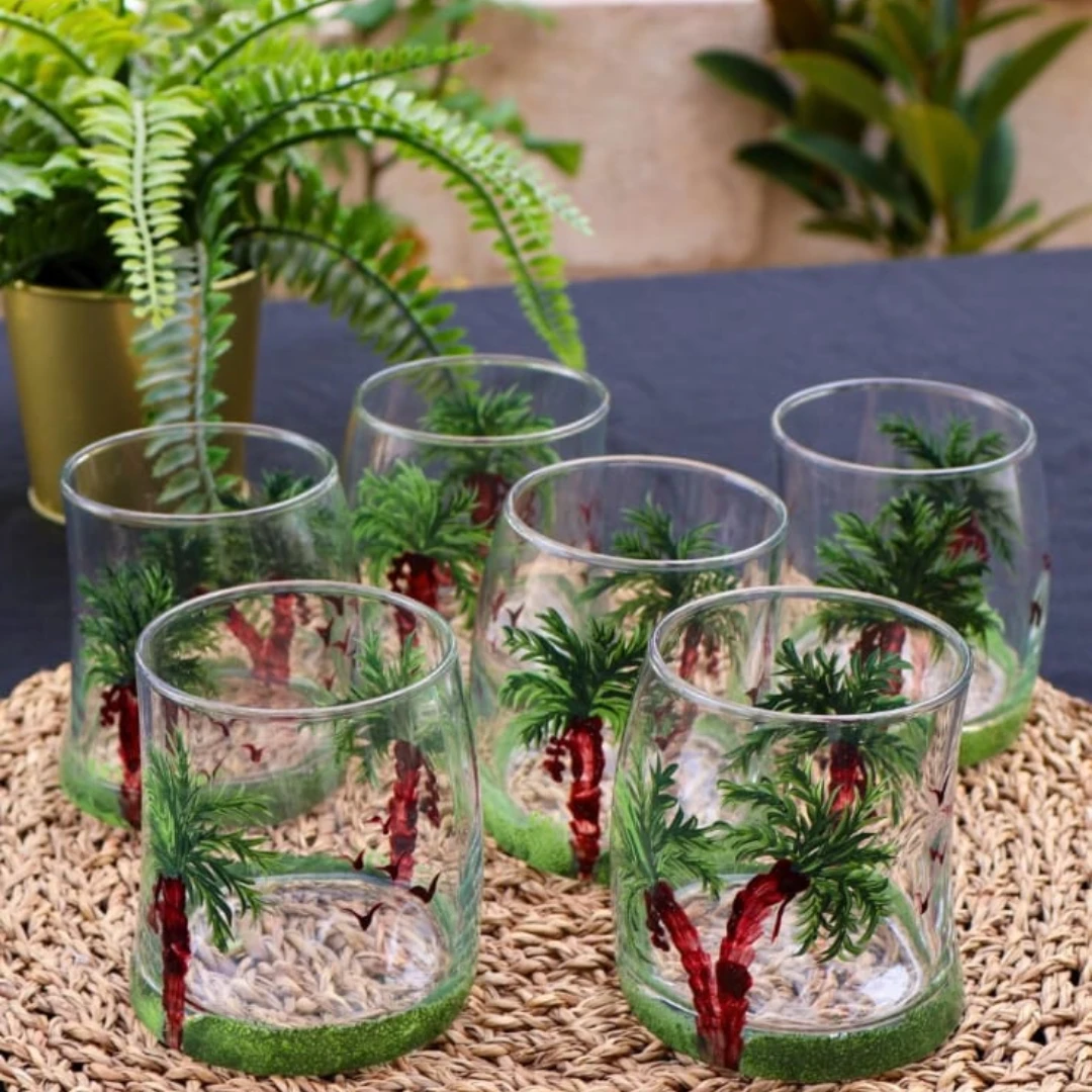 Add a unique, heritage-inspired touch to your table with this beautiful set of 6 glasses, featuring a charming palm tree design π΄π΄π΄π΄ β¨ Features: