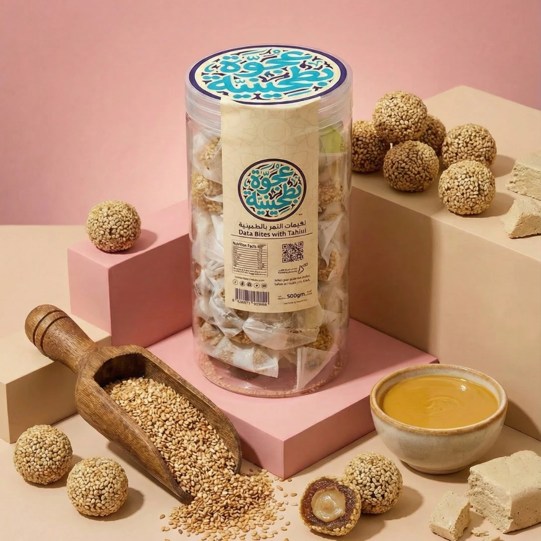 Stuffed Date Balls with Tahini – Premium Quality, Authentic Taste Enjoy a rich, natural flavor with stuffed date balls made from carefully selected, high-quality dates. Their soft texture and balanced sweetness create a luxurious experience that combines natural energy with nutritional value. We fill them with stone-ground cold-pressed tahini, known for its high nutritional benefits and richness in healthy sesame oil, giving a deep flavor and creamy texture that melts smoothly into the date. Features: