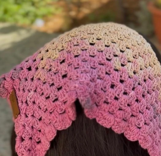 Description: Bring a soft, handmade touch to your outfit with this crochet triangle bandana in a captivating pink-to-cream ombre. The sunset-inspired gradient pairs beautifully with delicate scalloped edges and open-stitch detailing, creating a light and airy accessory. Perfect for adding color, texture, and a vintage charm to any hairstyle, this bandana blends subtle elegance with artisanal craftsmanship. Specifications:Design: Crochet triangle bandana with scalloped edges Why You’ll Love It:✔ Beautiful sunset ombre for a soft, feminine look |